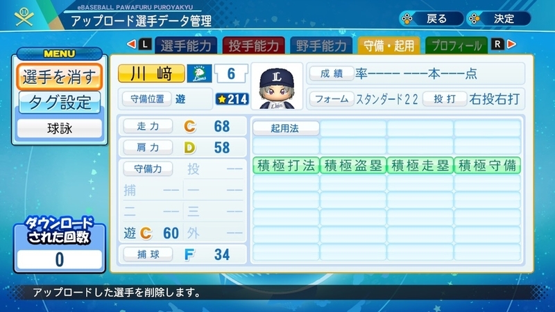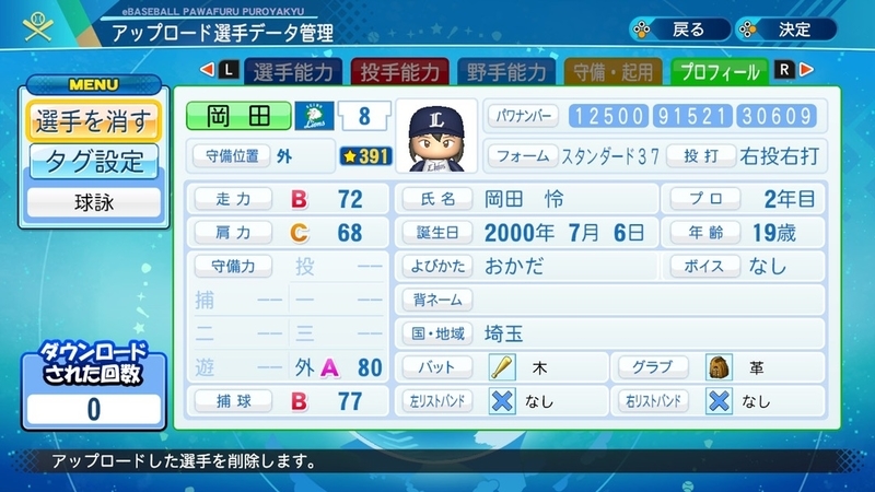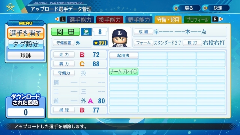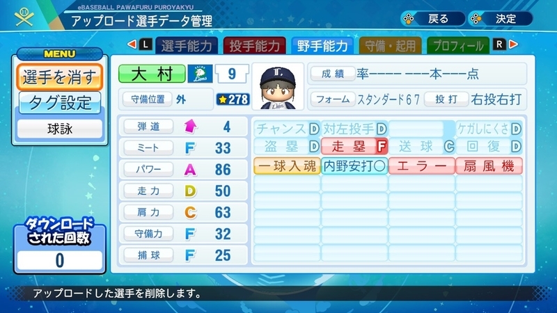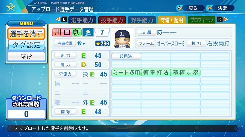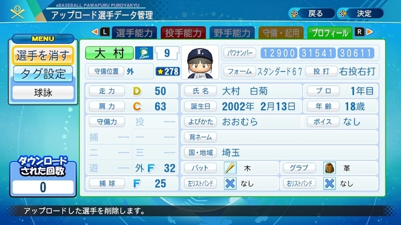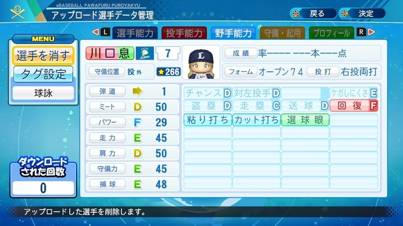 肩もE前半くらいにしたかったんだけど球速連動の仕様上これ以下にはできない、ケガで球速125未満に下がっても肩はそのままなんだね...