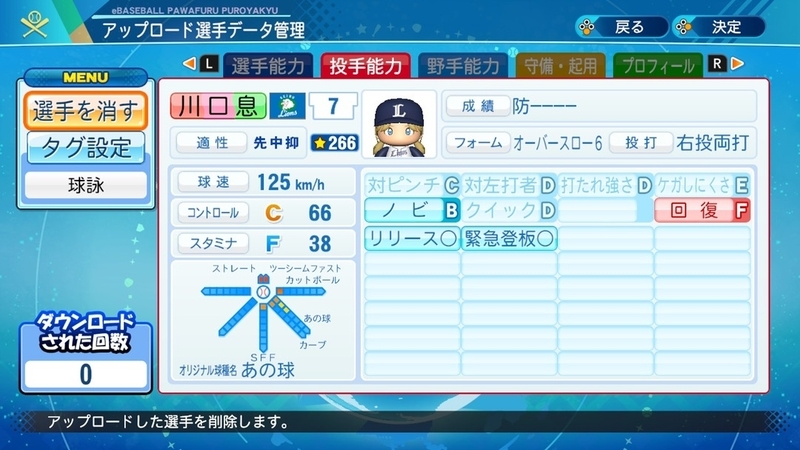 変化球は投げてたことが確定してるものからチョイス、変化量的に実戦だと火だるまになるけどまあ仕方ないよね